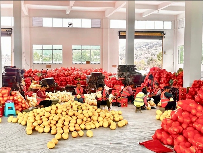 近年來,珠池壩村在當(dāng)?shù)卣С窒麓罅Πl(fā)展蜜柚產(chǎn)業(yè),種植了紅心蜜柚737畝、文旦柚100畝。2021年以來,中國有研聚焦定點(diǎn)幫扶珠池壩村的柚子產(chǎn)業(yè),投入幫扶資金建設(shè)了蜜柚倉儲(chǔ)中心、引水灌溉工程,提升了柚子產(chǎn)業(yè)基礎(chǔ)設(shè)施自動(dòng)化、綠色化水平,指導(dǎo)珠池壩村柚子產(chǎn)業(yè)健康發(fā)展。
