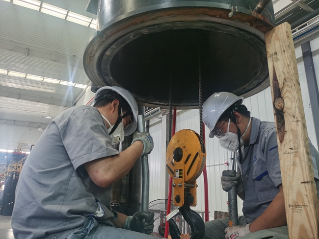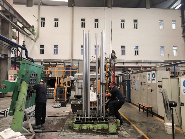 有研復(fù)材生產(chǎn)部員工正在進行鋁硅合金鑄棒的生產(chǎn)